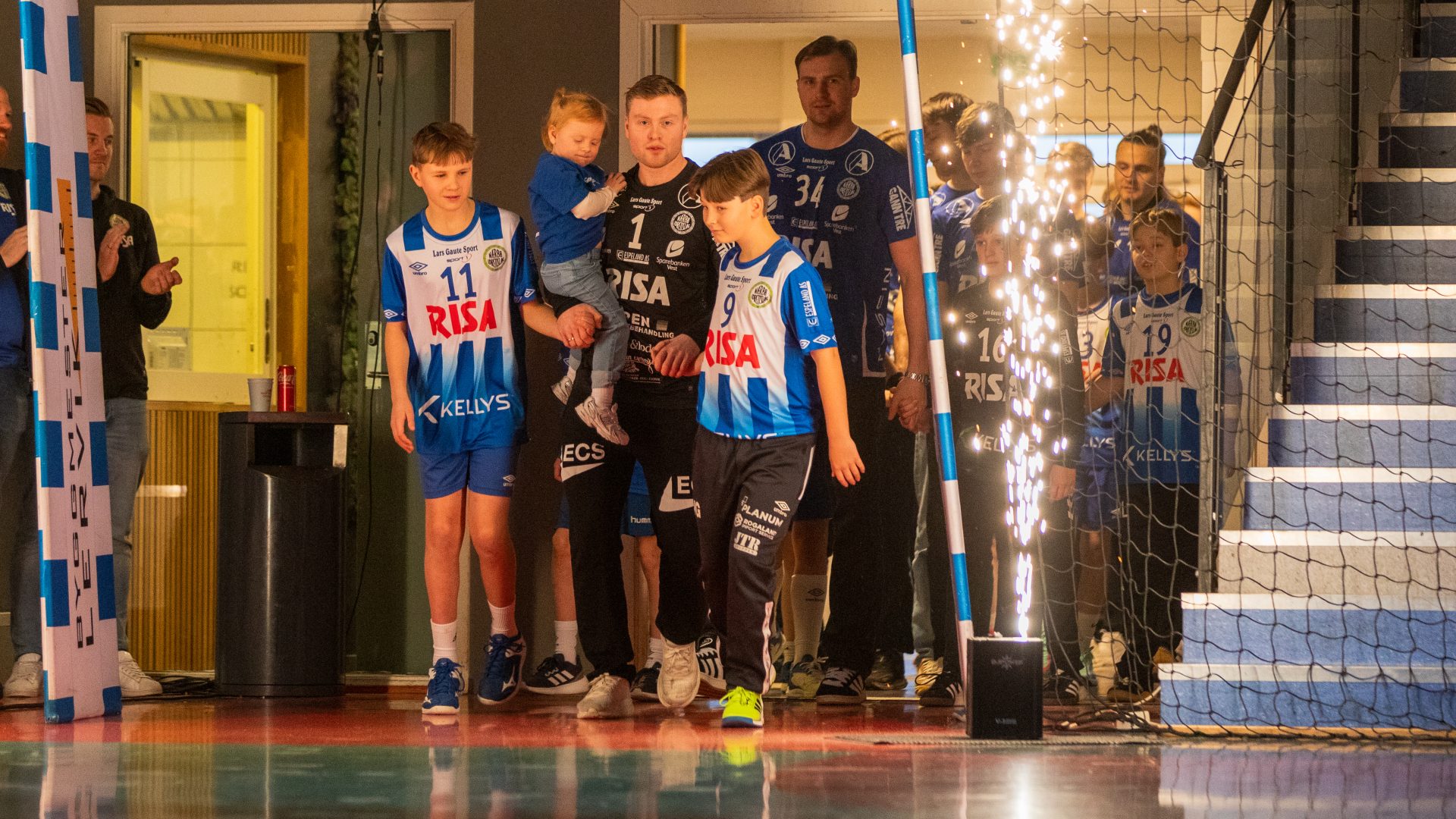 Tribunen var nok mer glissen enn under en elitekamp, men det var likevel god stemning og juble når motstanderlaget Vigrestad en og en løp inn gjennom portal og fyrverkeri til «Pirates of the Caribbean» før jubelen steg noen hakk da hjemmelaget en etter en ble ropt opp og løp inn på banedekket til Metallicas «Enter Sandman» og med hver sin eliteseriespiller i hånda.