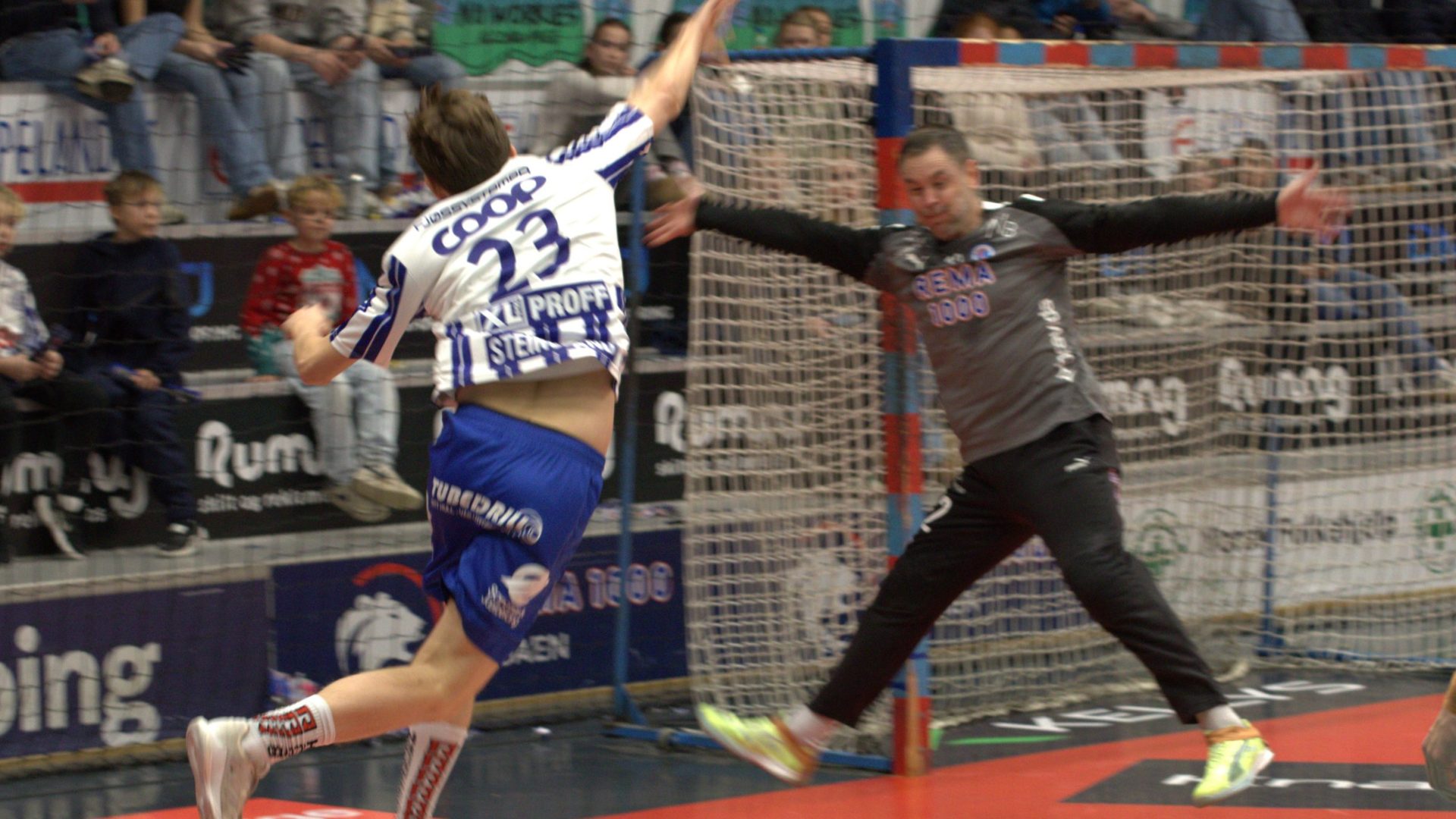 Tord Haugseng får seg en midt i fleisen av Vetle Eck Aga.